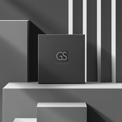 Create a sleek, monochromatic logo for 'GS,' a furniture and interior products company. The design should be minimalistic and elegant, capturing the refined aesthetic seen in brands like Mercedes or Sony. Focus on clean lines and a sophisticated composition, with a timeless appeal that conveys quality and craftsmanship. The logo should be simple yet distinctive, embodying a sense of luxury and modernity