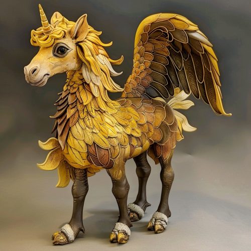 Hippogriff-Nuckelavee standing, Ivorian-Singaporean, golden yellow and chocolate brown --v 6.0