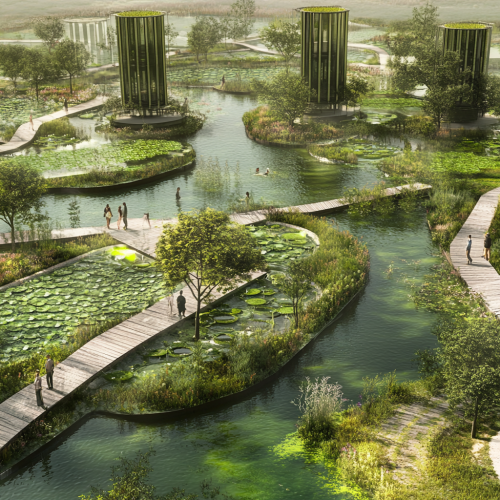Future Eco Site with Algae Ponds and Human Ramps