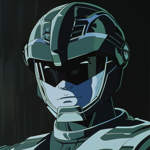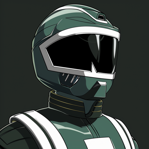 Anim style illustration, profile picture. Future soldier in a Power Ranger helmet. Tritone, black, white, and blue-green. Dark background. --style raw