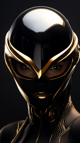 Wide-angle shot of an elegant black marble armored sci-fi astronaut power ranger on the beach. Her helmet reflects the bright red moon. Ethereal light, 70s polaroid film photography, Wes Anderson, Maxfield Parrish, Klimt, Kusama --chaos 7 --ar 16:9 --v 6.0