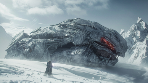 humanoid with king cobra head, laser gun on snow , very futuristic, epic, cinema,8k --v 6.0 --s 250 --ar 16:9