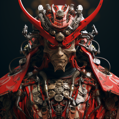 mecha samurai with dragon head wearing advanced futurist armor suit, swords, assault rifles in cyberpunk world --ar 4:7