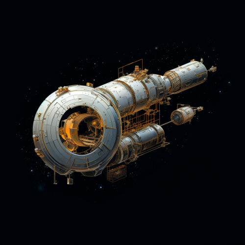 on a black background angled panorama view of an detailed cartoon high tech sci fi star observatory sspace station floating in space lee bontecou style high resolution minimalist concept digital painting watercolor amir zand