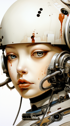 a beautiful robotic woman daydreaming with open eyes, her beautiful brown cyborg horse is waiting patiently by her side, she has a light makeup, the woman is standing in front of the sea , the horse looks lovingly at her, emotional art, bright colors, negative colors, shapes are fluid and undefined, high definition digital art, negative color, a mix of pastel colors and neon, a poetic and creative perspective, inspired by Man Ray's visionary photography, large-screen camera, photo art that is also inspired by digital art, cold color scale with hints of flickering neon, --ar 5:4 --personalize 7gogb9o