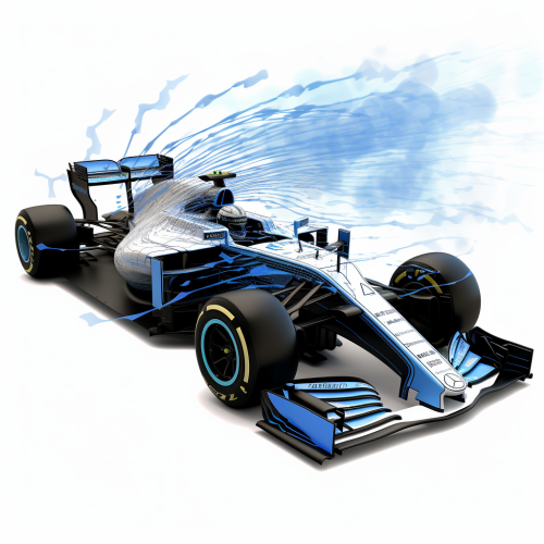 airflow analysis of a Williams FW42 Formula One racing car when travelling at high speed on a white background, you can see how the air flow moves around the racing car