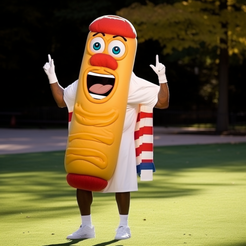 Deshuan Watson, football quarterback dressed as a hot dog holding a white towel