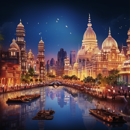 An image depicting a futuristic vision of luxury shopping in India. fujifilm --style raw --ar 2:3