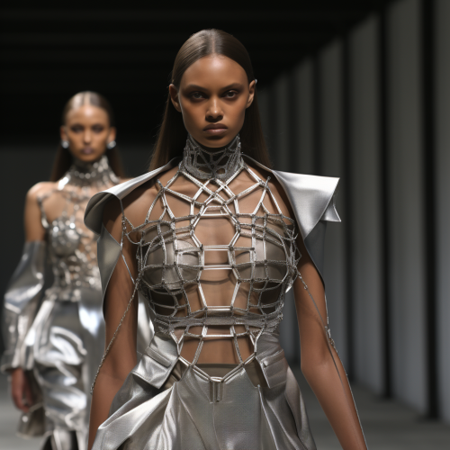 This is a full-body portrait of a 3D female with an overall color palette consisting of metallic silver, white and dark green. In the cyberpunk world of the future, a beautiful girl became the center of vision. With hair as white as snow, dark green goggles and silver-white headphones, she looks like a fashion icon from the future. She wore a metallic colored circuit board gown with a unique futuristic fashion design style that caught people's eyes. The gown seemed to be made of countless circuit boards that were stitched together, sparkling with a glamorous light, highlighting her distinctive personality. Under the high-resolution lens, the girl's facial features are clearly visible and every detail is carefully sculpted. Her eyes are deep and captivating, as if she can see everything. The bold color scheme adds a touch of mystery and charm to her beauty. The girl's image stands out even more against this white background full of technology. Her existence seems to add a touch of bright color to this future world, becoming the most dazzling star in this cyberpunk world --ar 9:16 --personalize qgpy5ik --stylize 1000 --v 6.1