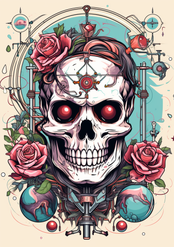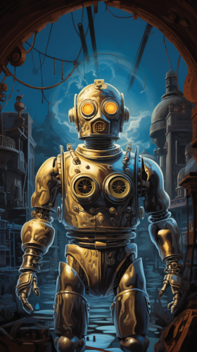 A vibrant medieval Artistic exploration image with Pirate tattoo, telecom technician robot, Space food, medieval style, and a Stylized view --v 5.2 --c 15 --style raw --s 300 --ar 5:7