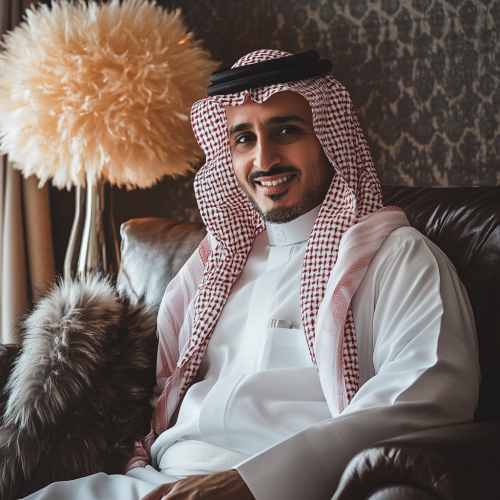 A cinematic scene set in AlUla, Saudi Arabia, celebrating Saudi National Day. The image features a young man and woman dressed in traditional Saudi attire. The man is wearing a pristine white thobe with a black bisht embroidered in gold, while the woman is adorned in a green abaya with intricate patterns symbolizing Saudi heritage. They stand side by side in the heart of AlUla, surrounded by the towering sandstone cliffs, ancient rock formations, and the famous Elephant Rock in the background. The golden hour light bathes the entire scene in a soft, warm glow, highlighting the stunning natural beauty of the landscape. The camera captures a wide angle, giving a sweeping view of the vast desert and monumental cliffs, while the couple remains the focal point. Their traditional clothing contrasts beautifully with the rugged, ancient terrain, and the cinematic composition creates a highly detailed, ultra-realistic visual. The use of a 50mm lens provides a balanced depth of field, blending the subjects and their breathtaking surroundings seamlessly