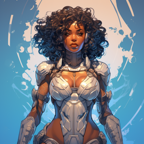 cell shaded anime illustration art style, African woman soldier, sci-fi nanotech futuristic, ghost emanating from her chest