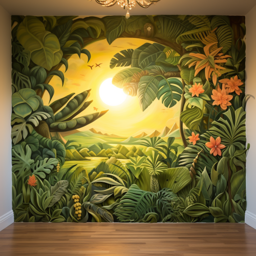 a leopard peering through dark jungle foliage. bright colors, bohemian aesthetic. --ar 9:16 --no white background --s 50