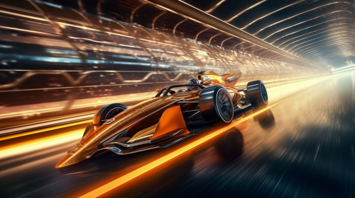4k futuristc formula one car flying around racetrack --ar 16:9