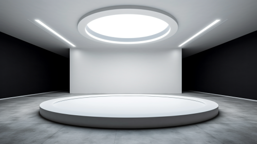 a futuristic jumbotron inside a arena, made out of unimaginable shapes, in sthe style of a blueprint
