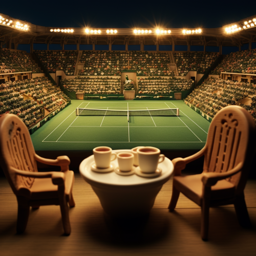 inside of an espresso cup where there is a tennis stadium with lights