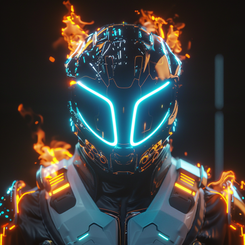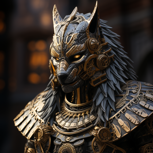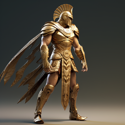 Futuristic warrior in heavy armor with gold skin