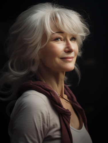 Perfect exposure, 8K, ultra realism, happy Helen Mirren as a hero in Dragon Ball manga style , photorealistic , cinematic --ar 3:4