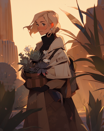 [Liet Kynes man from Dune in the desert with green plants] as a [Disney] character --style scenic --ar 4:5 --niji 5