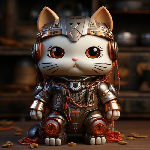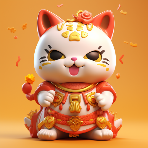 maneki-neko cat as a mascot for an online lottery in the style of the game 'fall guys: ultimate knockout', low poly, cyberpunk style --v 5.2 --s 750