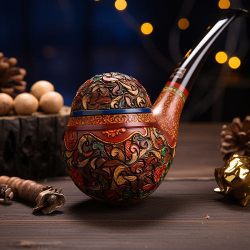 Christmas style wood smoking pipe barroco style, background color code #7D7D7D
