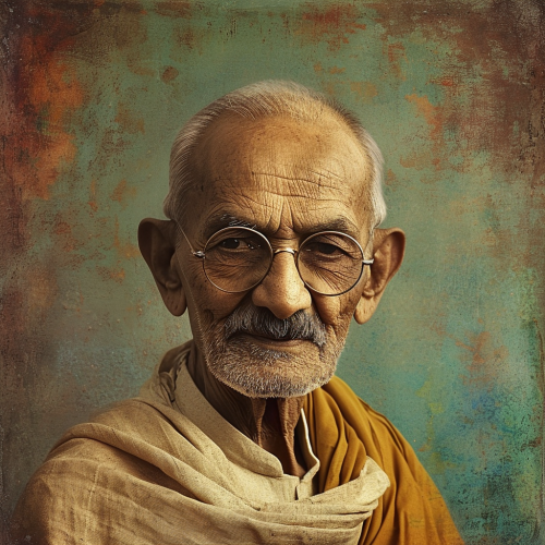 Mahatma Gandhi, crea un immagine di alta qualità , stile fotografico, con un background colorato e moderno, il soggetto guarda avanti --v 6.0