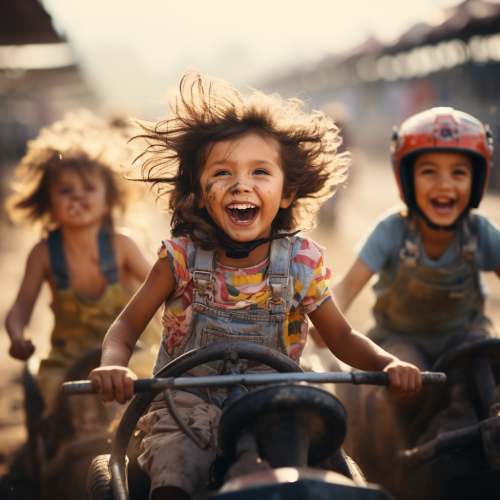 vibrant photo of happy kids racing, from side angle, beautiful, fun, epic --s 250