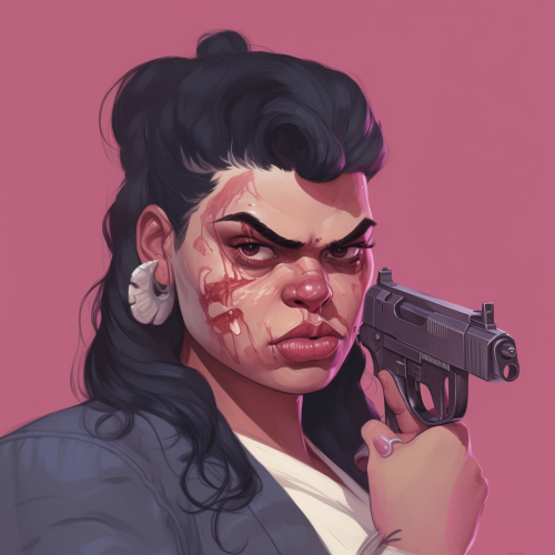 Gangster barbie. Female. Portrait. --style 3fsE3uZyG4D --v 5.2