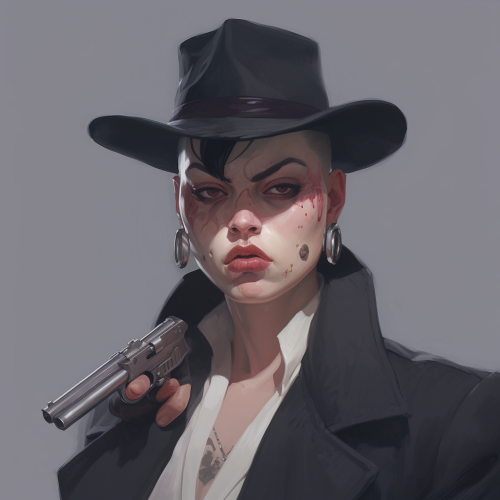Gangster Sonya. Female. Portrait. --style 3fsE3uZyG4D --v 5.2 --no guns
