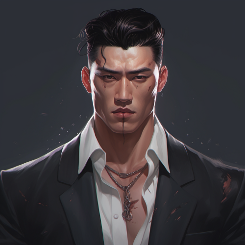 Gangster Lee. Male. Portrait. --style 3fsE3uZyG4D --v 5.2 --no guns