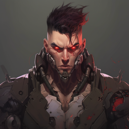 Gangster Mech. Stitches. Male. Portrait. --style 3fsE3uZyG4D --v 5.2 --no guns