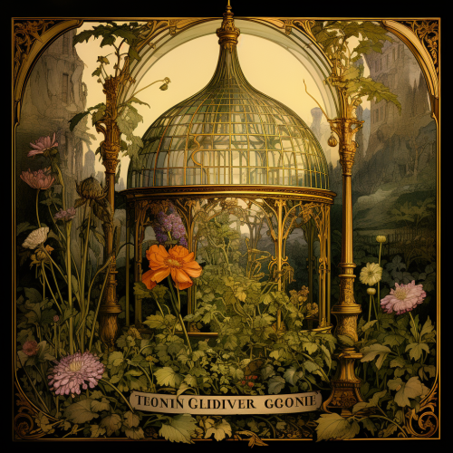 black and white draw of a bay window of a luxurious house with a view of a large garden during a large luxurious party inside --ar 16:9