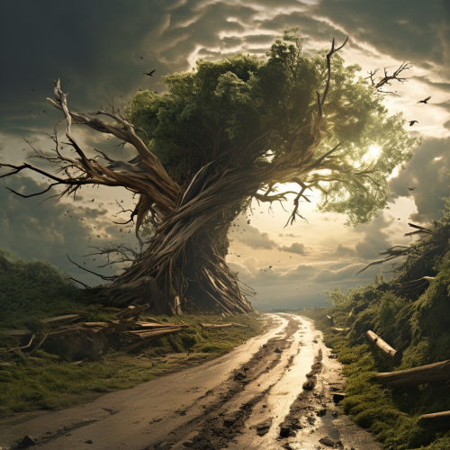 Ancient Normadic Tribe in German Woods during late Paleolithic Era posessed by Demon, spiritworld, psychedelics, cinematic, photorealisitc, vivid colours, dreamlike, spiritual, film grain, --ar 16:9
