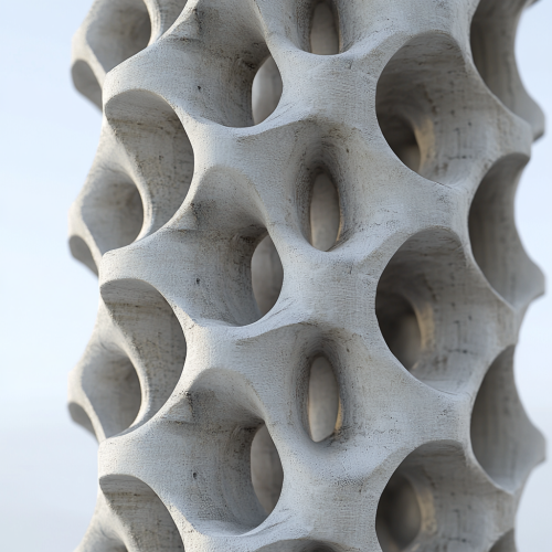 a 3 d printed concrete interlocking modular component for a facade, zig zag shape in response to passive cooling and heating capabilities, modular and stackable component for typical construction, sustainable, organic and made from sagrassum, lego, high render detail