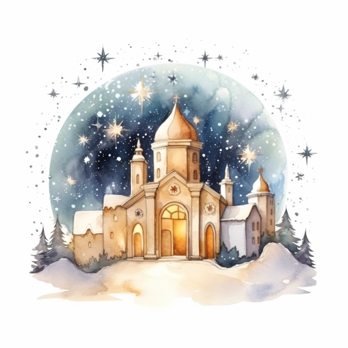 cartoon Holy Nativity Christmas watercolor clipart, isolate white background