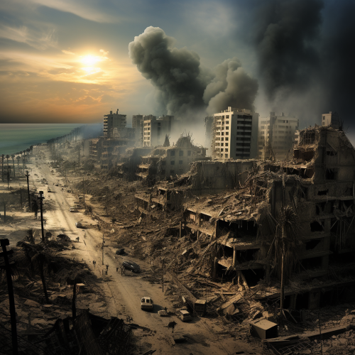 caf football cup is held in Gaza within the war and the destroyed environment, everything is destroyed people are dead in the streets , --ar 2:3