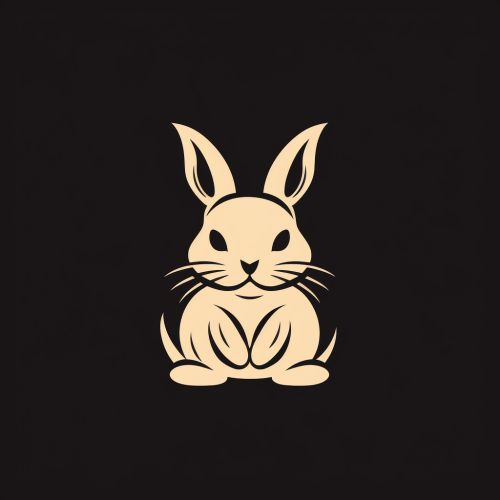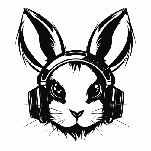 a black and white logo of a rabbit listening to headphones, the rabbit has a black eye and scratches on his face