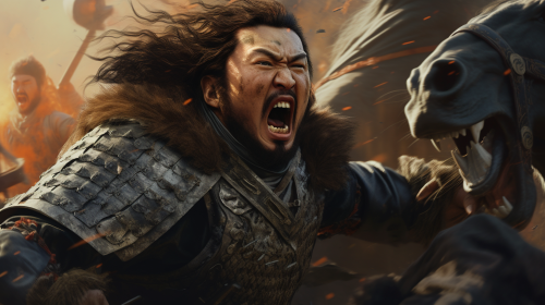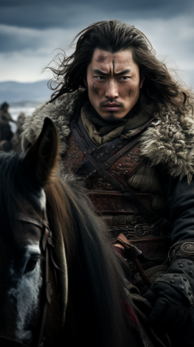 Genghis Khan landscape, windswept plains of Mongolia, a tempest of unbridled ferocity, swift horsemen invade entire lands from China to Europe, cinematic --ar 9:16