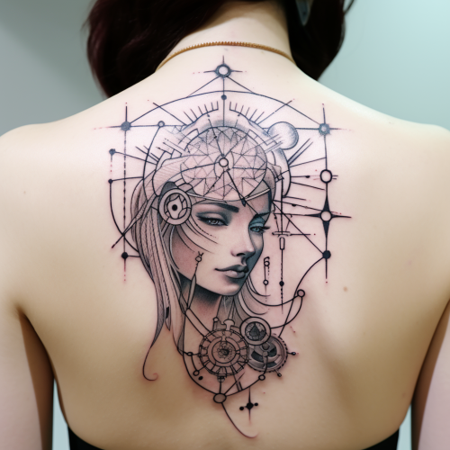 A detailed tattoo design of the Greek god Atlas, depicted from a side view, holding up an Earth globe. His body should be fully visible, from head to toes. Use a fine line style and black and grey ink on white paper. Create a tattoo sketch with a focus on anatomical accuracy and intricate detailing.