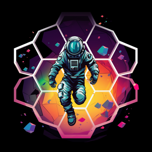 A mascot logo of a doctor glitching through space, simple, vector, Psychedelic Art, with hexagons in the background --no realistic details