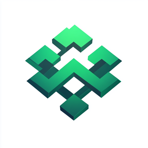 Create a sleek, modern logo featuring an abstract, interlocking geometric design that symbolizes intelligence and connection. The logo should have a fluid, continuous shape with sharp edges and subtle curves, exuding a sense of innovation and technology. Use a vibrant green color as the primary tone, with a minimalistic, flat design. The style should evoke a high-tech, futuristic feel while remaining simple and elegant, inspired by AI and digital networks.