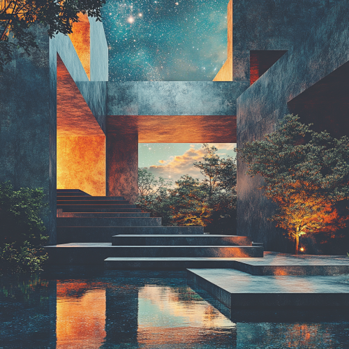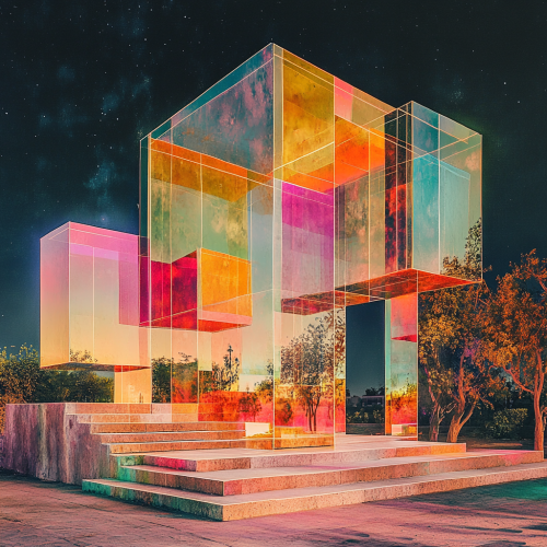 ultra realistic cubism photography / minimalistic / prismatic / pop-art styling with floating geometric shapes in vibrant hues / emphasize the natural beauty of landscaping / starry night / dynamic illumination / asymmetric / Droste effect --v 6.1 --stylize 250 --chaos 1 --style raw --weird 1