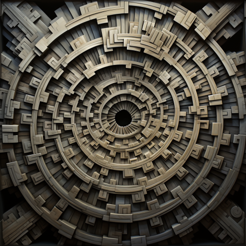 a progression of squares in a geometric pattern spiralling out from the centre, shading from orange in the centre to blue on the outer edges