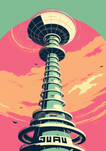 "Create a vibrant poster for a rave party with a retro-futuristic theme. The design should feature bold neon colors, with a mix of black and electric tones. Include futuristic elements like digital grids, abstract shapes, and glowing lights. The style should be illustrative in a Green trone."
