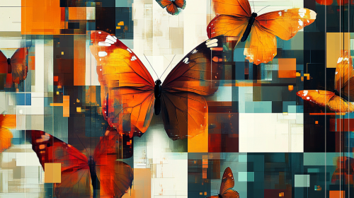 illustrative icons for the Natural History Museum of Los Angeles butterfly pavillon. abstracted in their simplest form. simplified. in a circle, they have to be simple icons, like for an app. natural colors that evoke both organic and the urban nature of Los Angeles. make many different ones. use line.