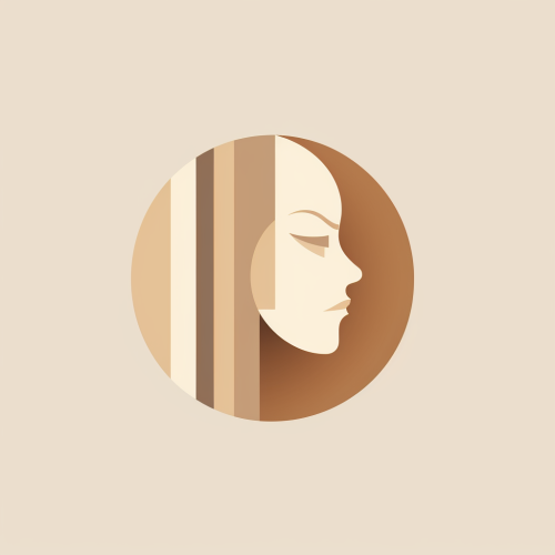 flat geometric logo for skincare human beauty simple minimal shape by ivan chermayeff light brown pallette