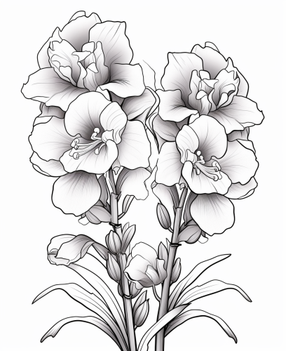 Coloring page for kids, delphinium, cartoon style, low detail, thick lines, no shading --ar 9:11