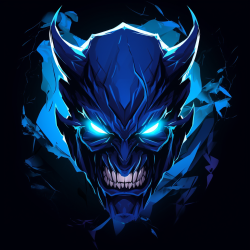 a blue demon oni monster logo with sharp teet logo with transparrent background