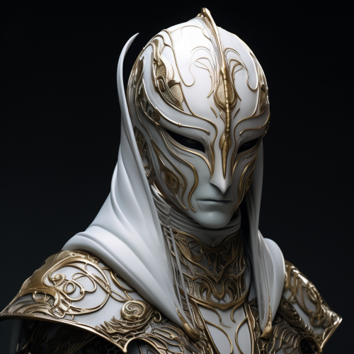 male helmeted elf god of law. Helmet covers eyes. Resplendent and resolute. Hyperrealistic.
