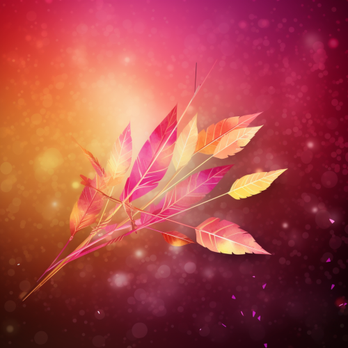 a bow and a single arrow background autumn leaves aurora borealis red pink yellow --v 5.0